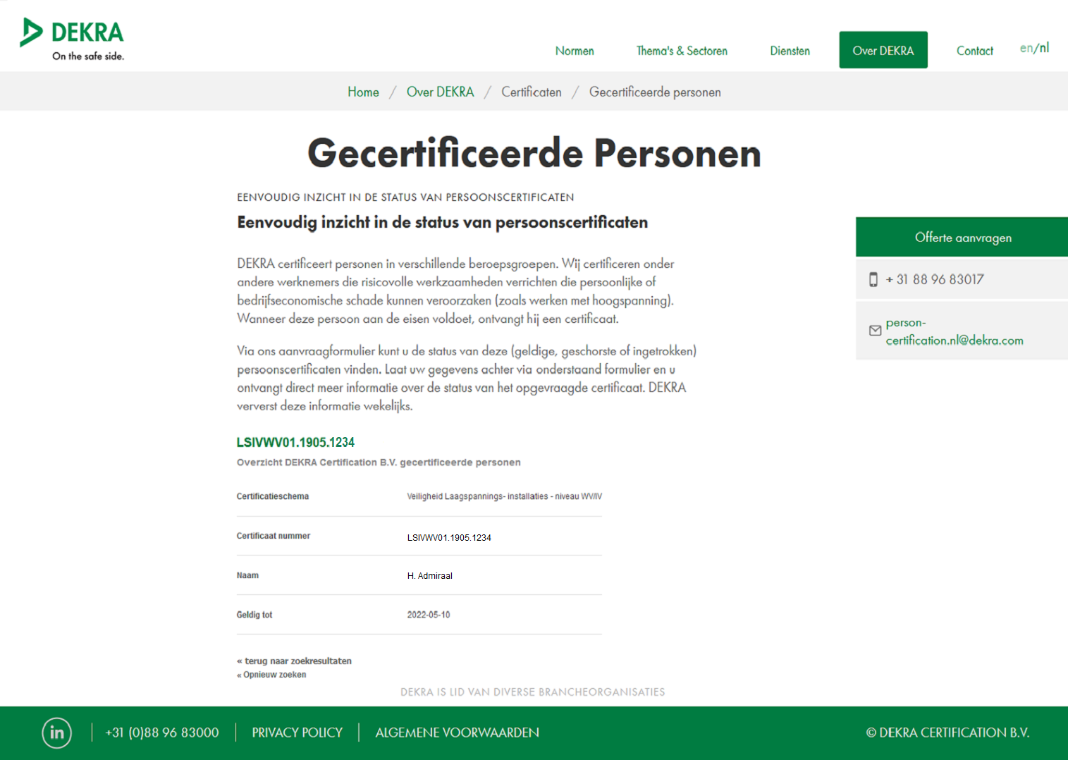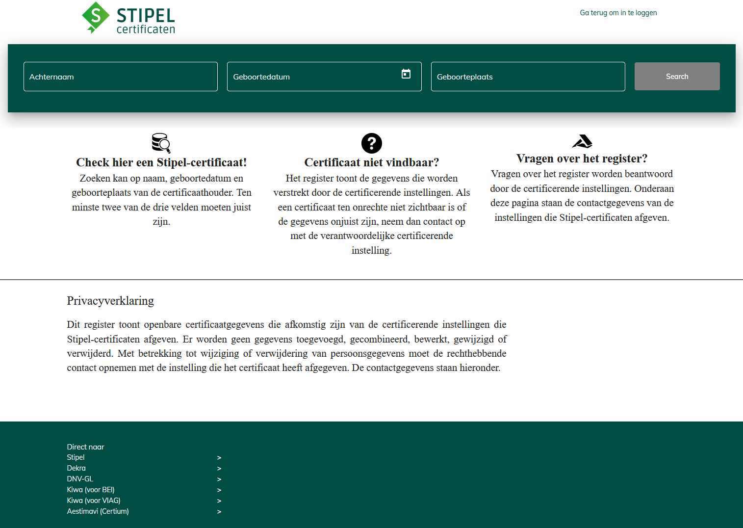 Gegevens kunnen worden gecontroleerd volgens het Stipel / Dekra register. Staat u niet geregistreed bij Stipel dan kunt u gewijgerd worden voor een Schakelbrief main account.
